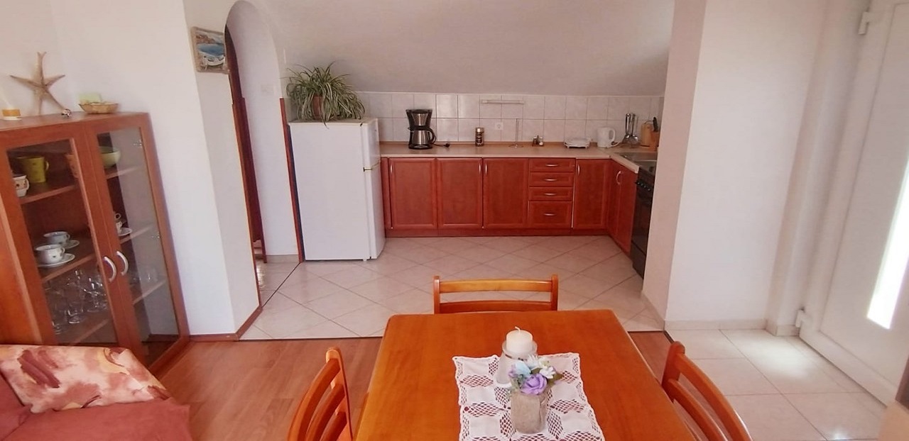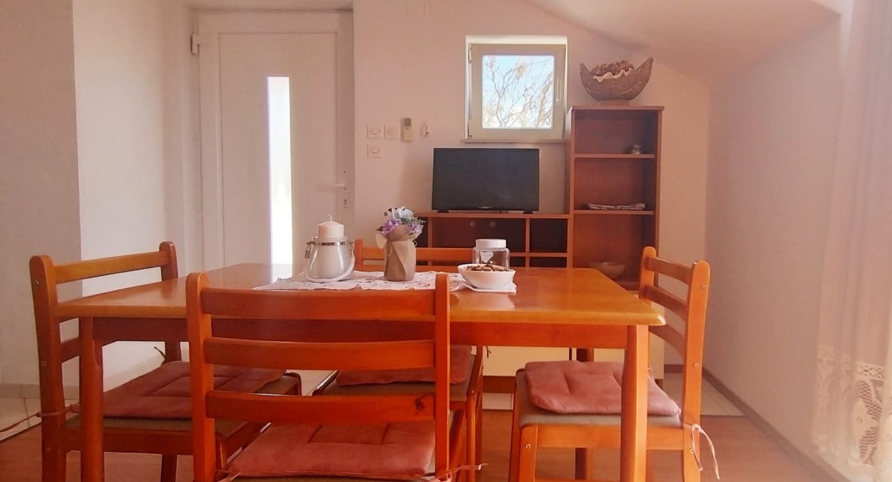 If you are planning a holiday in northern Dalmatia, you will definitely make the right decision with Rtina Miocici, 4 km from Razanac, as your holiday destination. This affordable apartment for two to four people scores with wonderful panoramic views of the sea and the entire bay.
