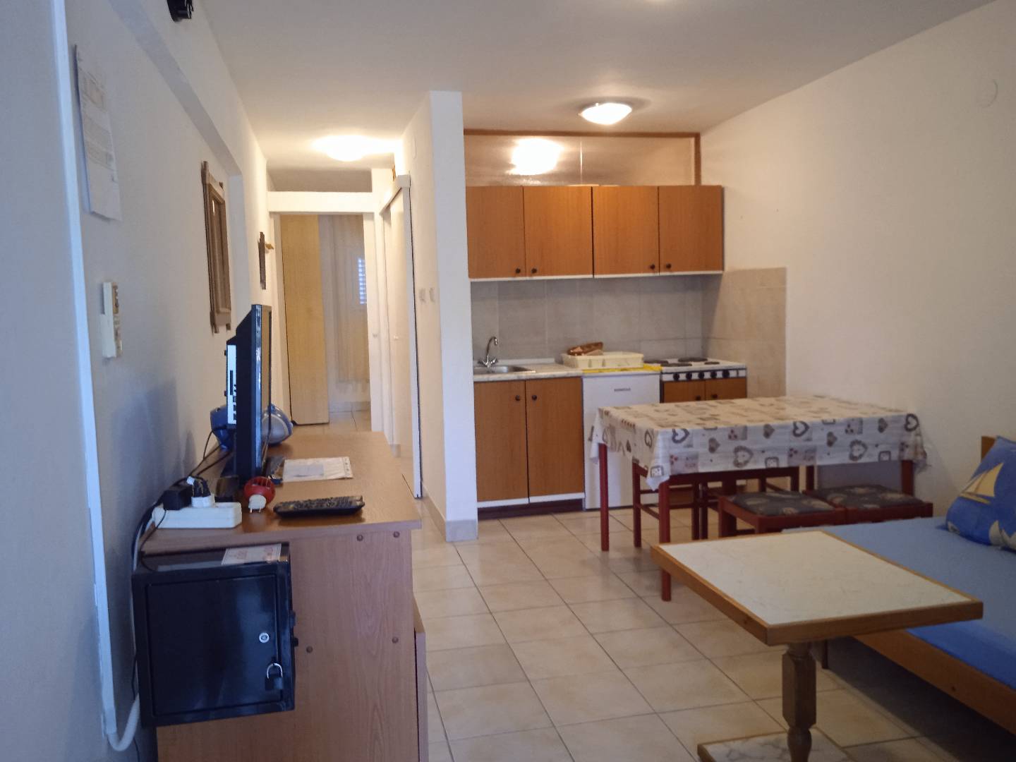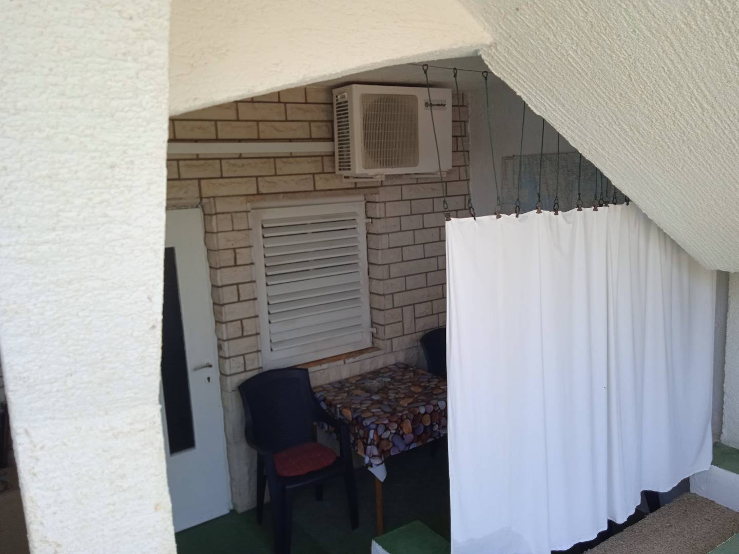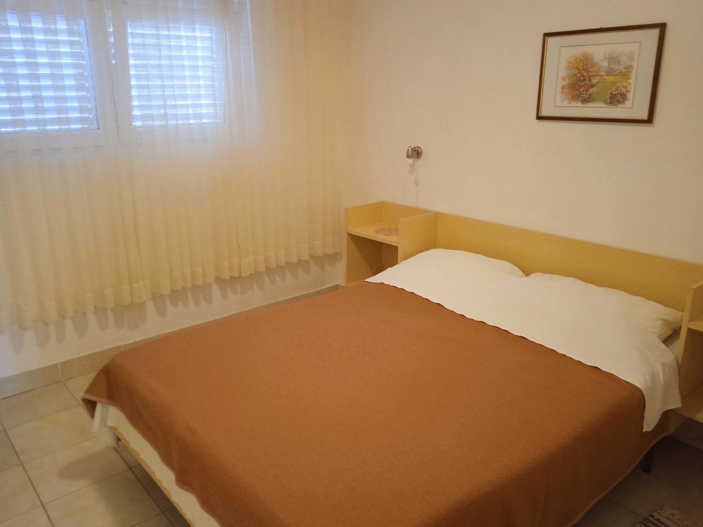On the surface of 28 m², this accommodation unit on the ground floor has a kitchen with a dining room, furniture and satellite TV, a double bedroom, a bathroom and a terrace of 7 m². The apartment can accommodate 4 people. WiFi can be used free of charge. For the use of the air conditioner, there are additional costs of €1 / 2 hours. During their stay, guests can use a shared washing machine at no extra cost, barbecue and parking in front of the house. A shop for everyday needs, an ATM and a restaurant are only a 5-minute walk away.